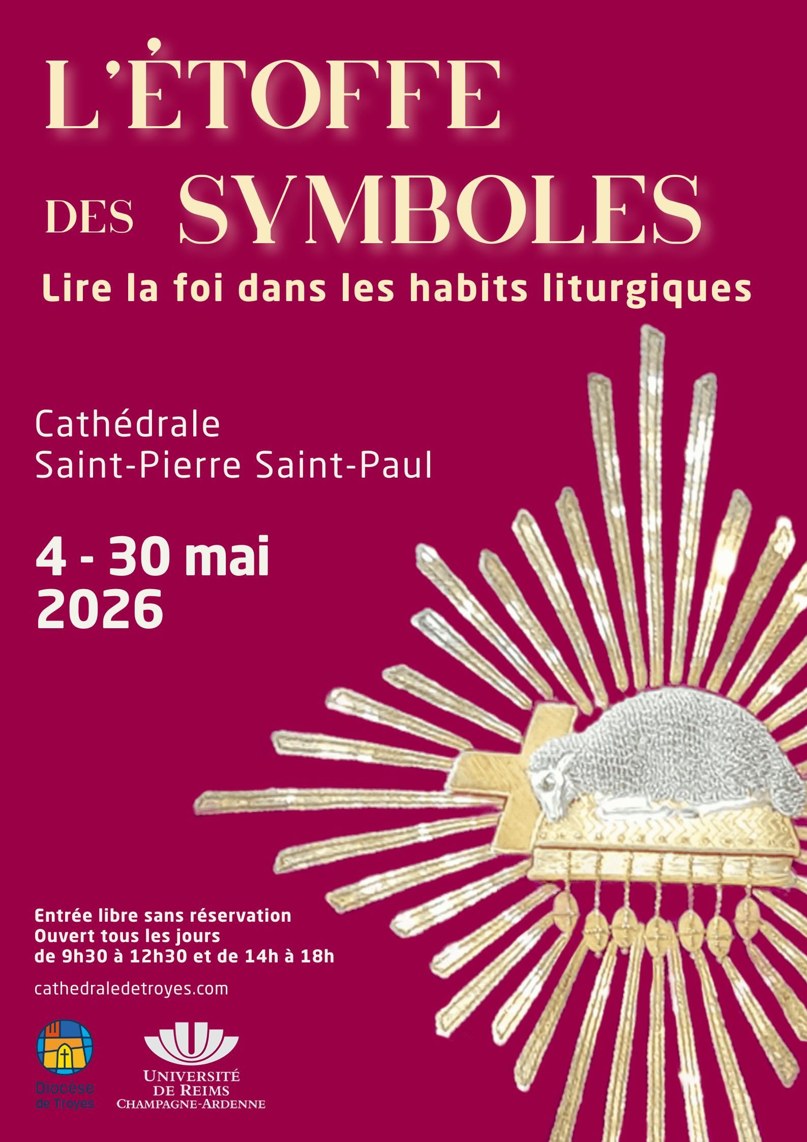 En mai 2026, venez découvrir l’exposition de chasubles à la cathédrale de Troyes, présentant une quinzaine de pièces uniques, du XVIIᵉ siècle à nos jours, issues du fonds historique de la cathédrale. Ces habits liturgiques dévoilent la richesse de la symbolique chrétienne à travers des motifs tels que le blé, le raisin, l’agneau pascal ou […]