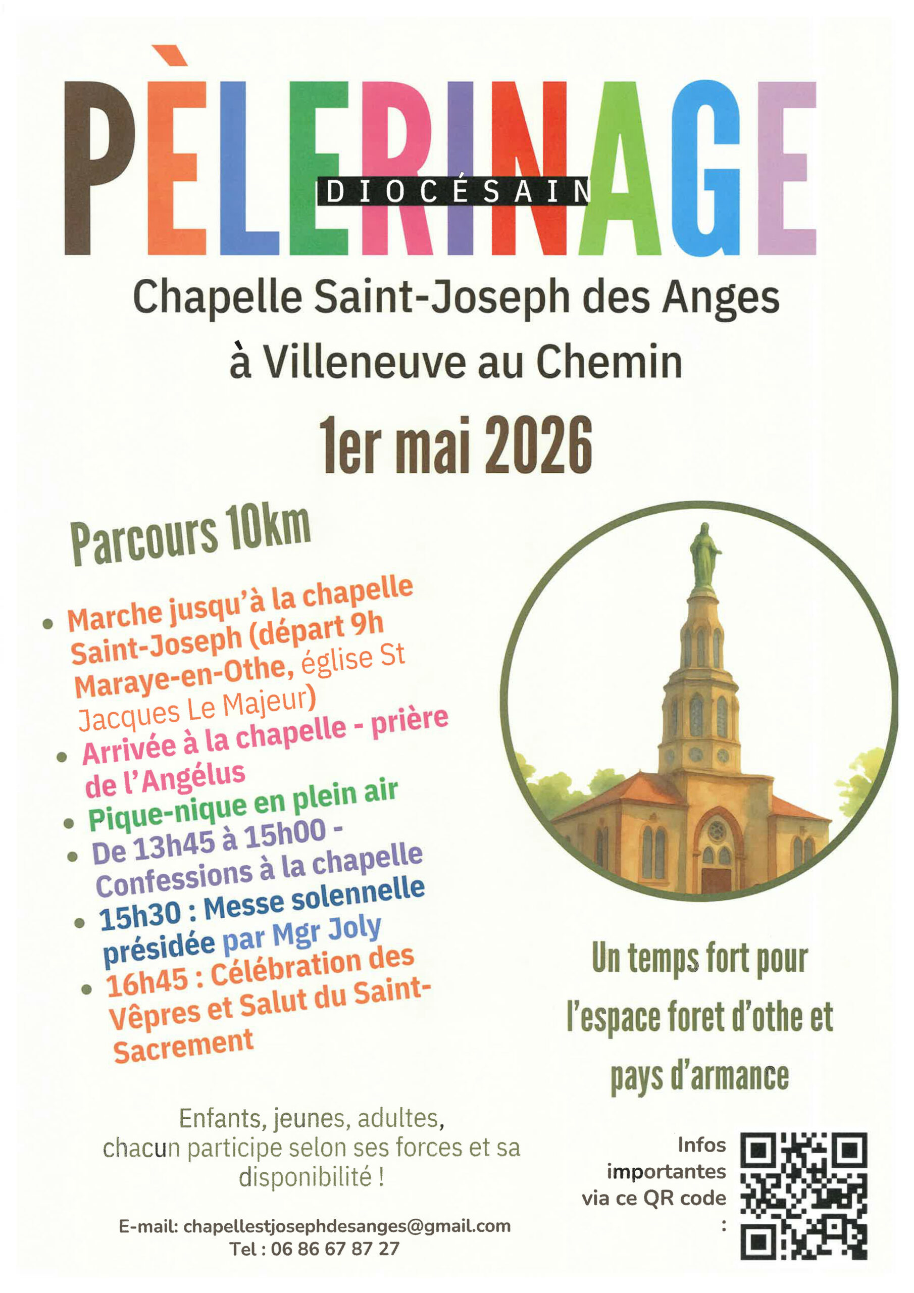Rendez-vous à Maraye-en-Othe pour le pèlerinage Saint-Joseph des Anges, marche de 10 km. 9h : Départ depuis l'église de Maraye-en-Othe. Arrivée à la chapelle et prière de l'Angélus Pique-nique 13h45 à 15h: confessions 15h30 : messe solennelle présidée par Mgr Alexandre Joly 16h45 : célébration des vêpres et Salut du Saint-Sacrement